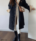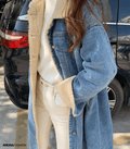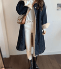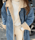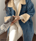 Damen langer Wintermantel aus Denim und Teddy