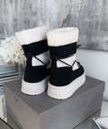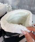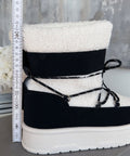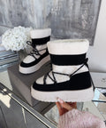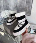 Bleib warm und stilvoll mit diesen gefütterten Teddy Snowboots in Schwarz-Weiß
