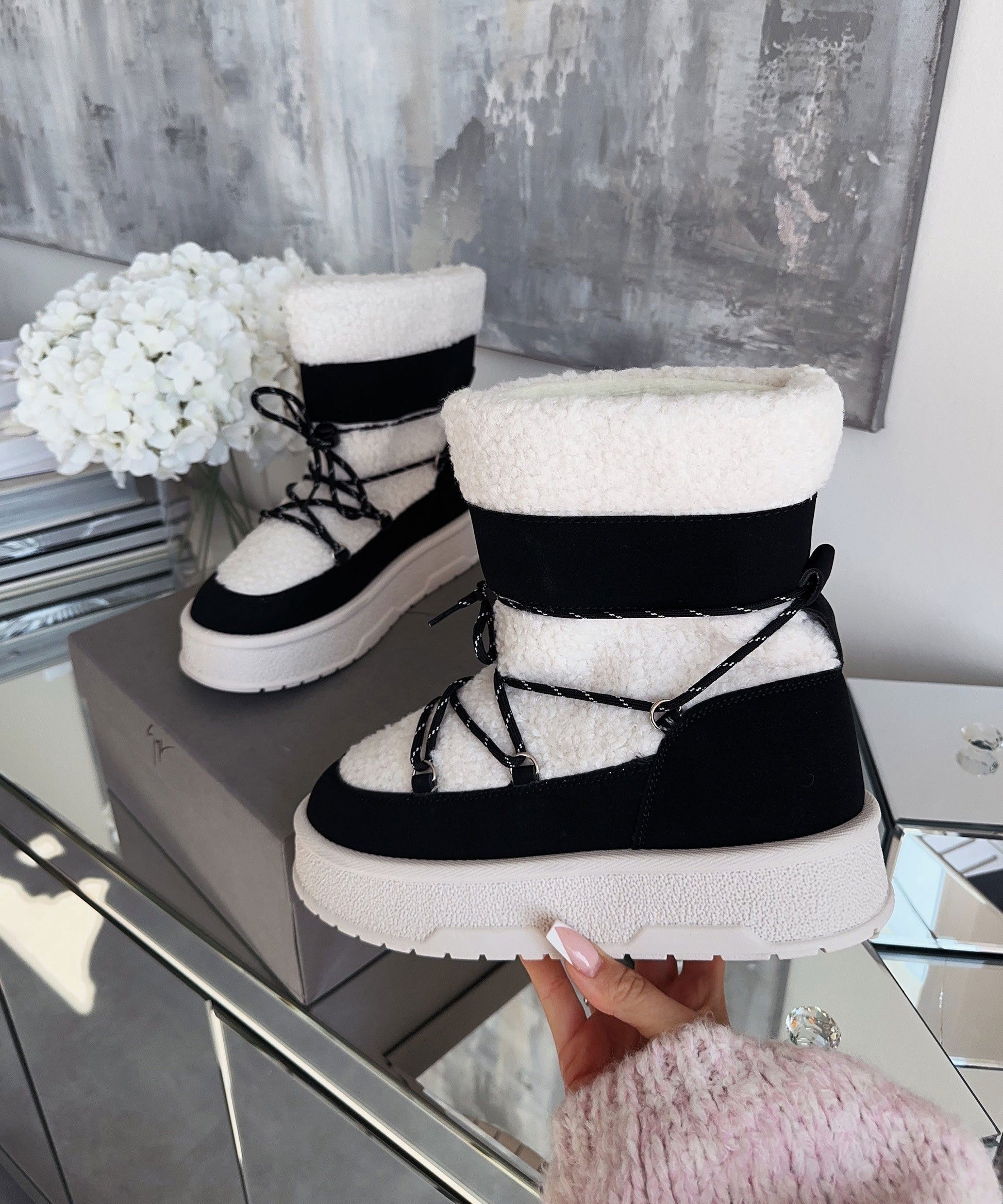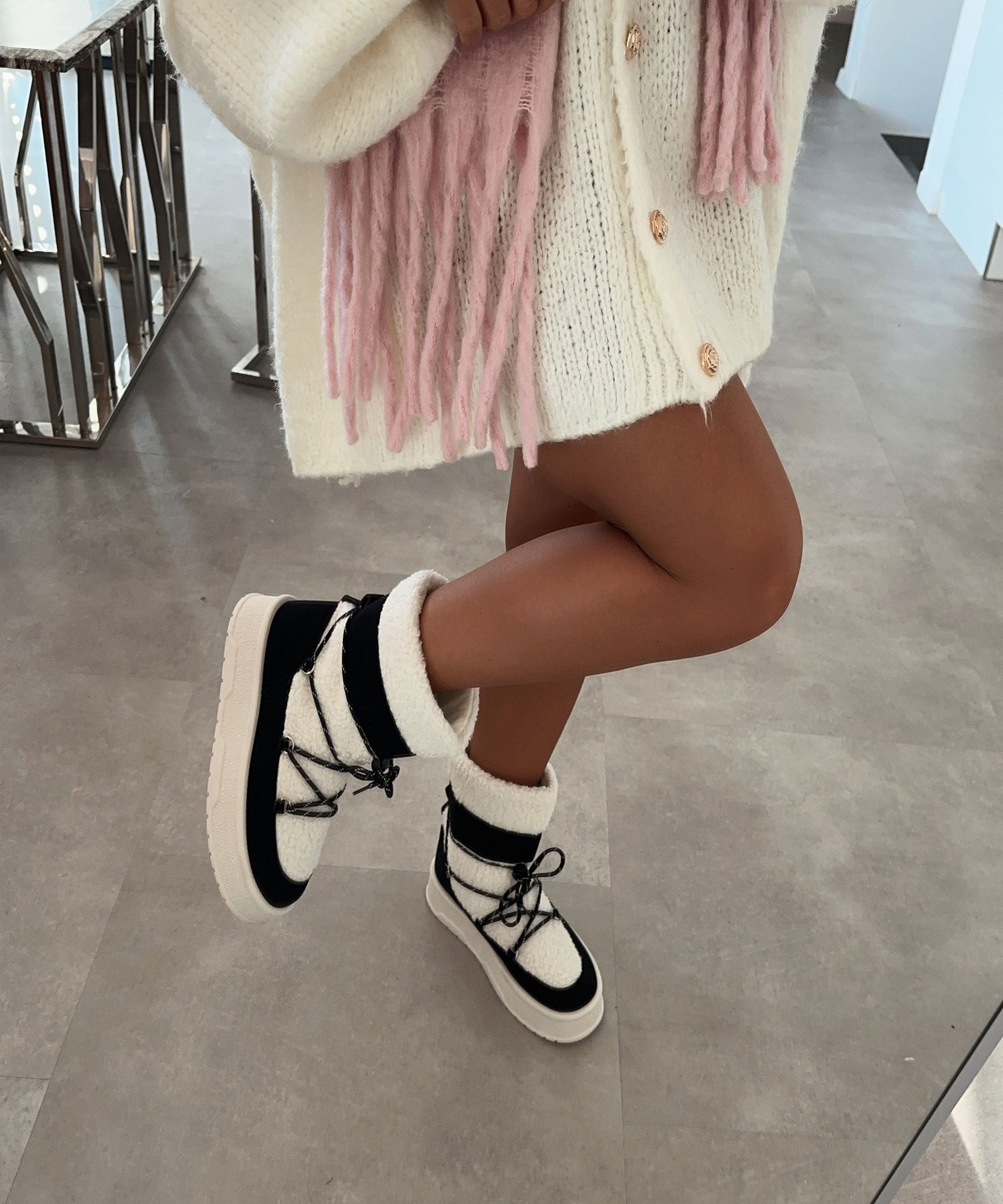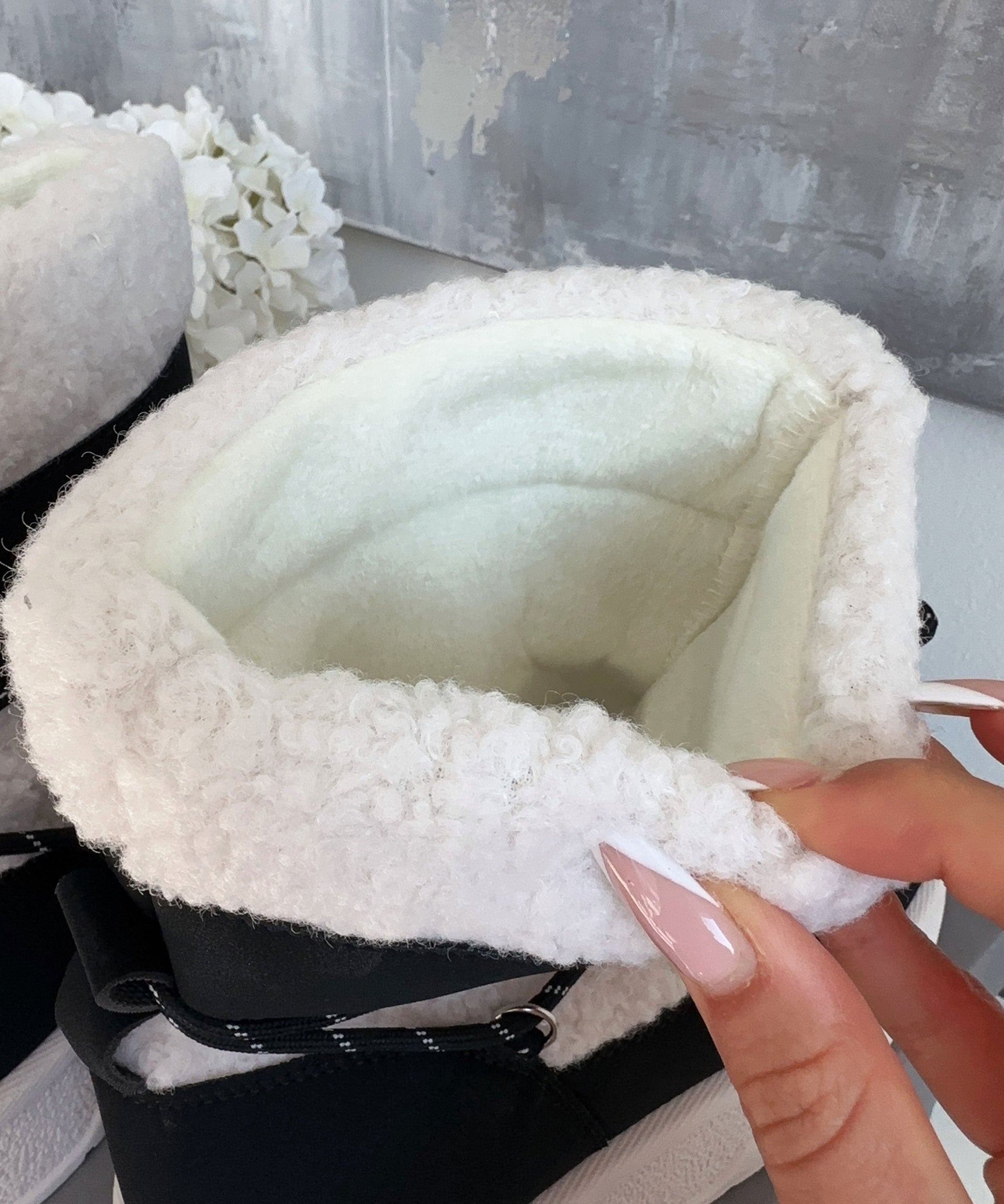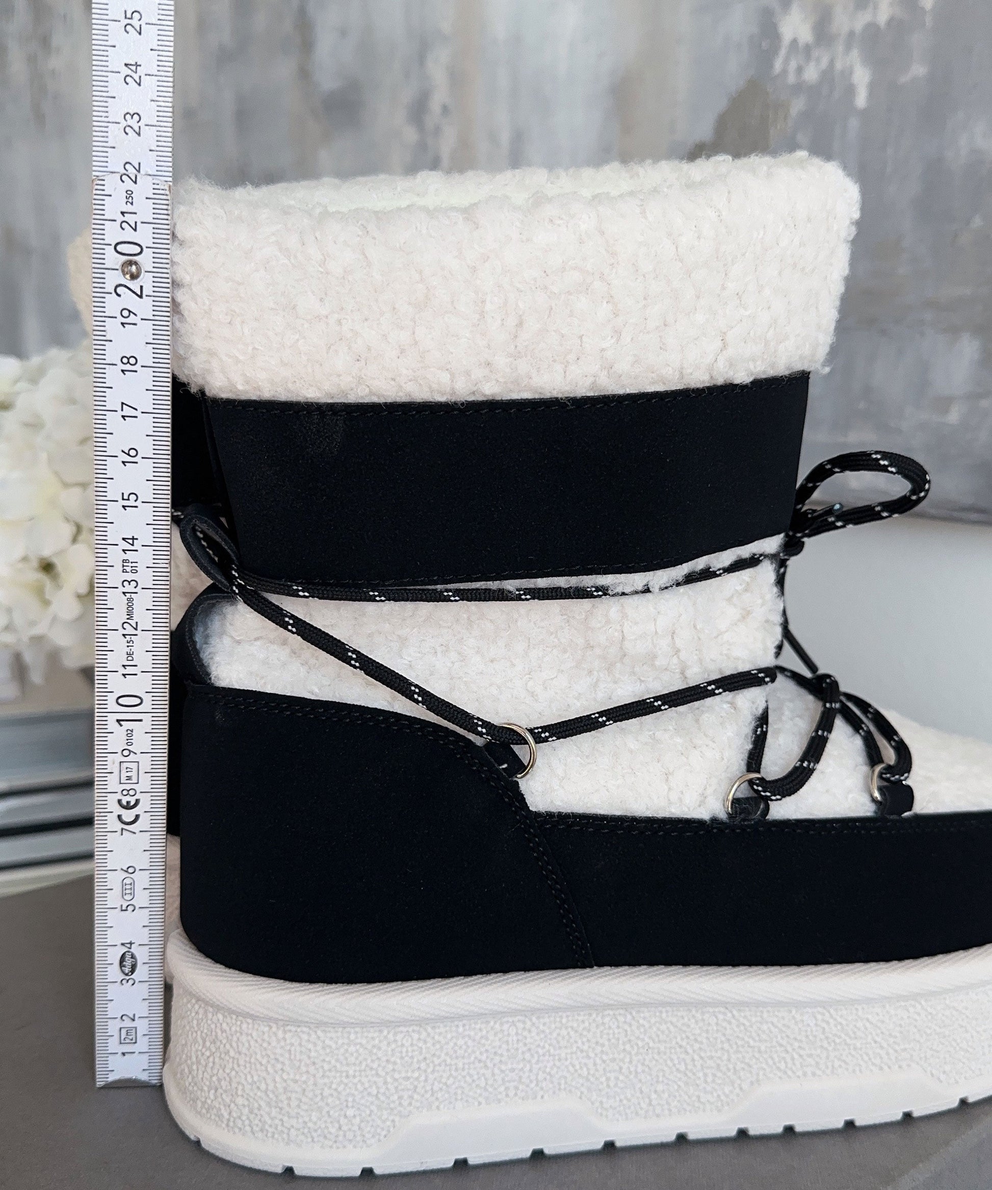 Gefütterte Teddy-Schneestiefel - Schwarz-Weiß