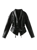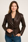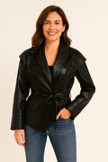Diese Jacke mit Bindegürtel kombiniert hochwertiges Kunstleder mit einem modernen Design, das jeden Look aufwertet. Der Bindegürtel betont die Taille und sorgt für eine feminine, elegante Passform. Diese Jacke ist zeitlos, langlebig und vielseitig kombinierbar mit Jeans, Röcken oder Kleidern. Perfekt für alle, die eine stilvolle und schmeichelhafte Lederjacke suchen.