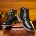 Men's Lace-up Boots in Leather Look with Side Zipper