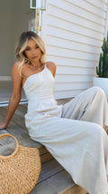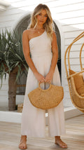 Questa tuta senza maniche con vita stretta è un capo alla moda che combina eleganza e comfort. Il materiale traspirante e leggero garantisce un comfort piacevole, soprattutto durante le calde giornate estive. La vita stretta mette in risalto la tua figura e crea una silhouette femminile. Il modello ampio e il design semplice rendono questa tuta ideale per diverse occasioni estive. Che tu stia facendo shopping, in vacanza o uscita, questa tuta è sempre una scelta elegante.