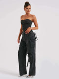 Breng je casual look naar een hoger niveau met deze high-waisted wide-leg cargo jeans, ontworpen om je de hele dag door trendy en comfortabel te houden.