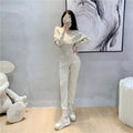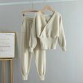 Deze ribgebreide loungewear set combineert stijl en comfort moeiteloos. Het wrap-top en de bijpassende joggers bieden een gezellige maar chique uitstraling, perfect voor ontspanning of casual uitjes.