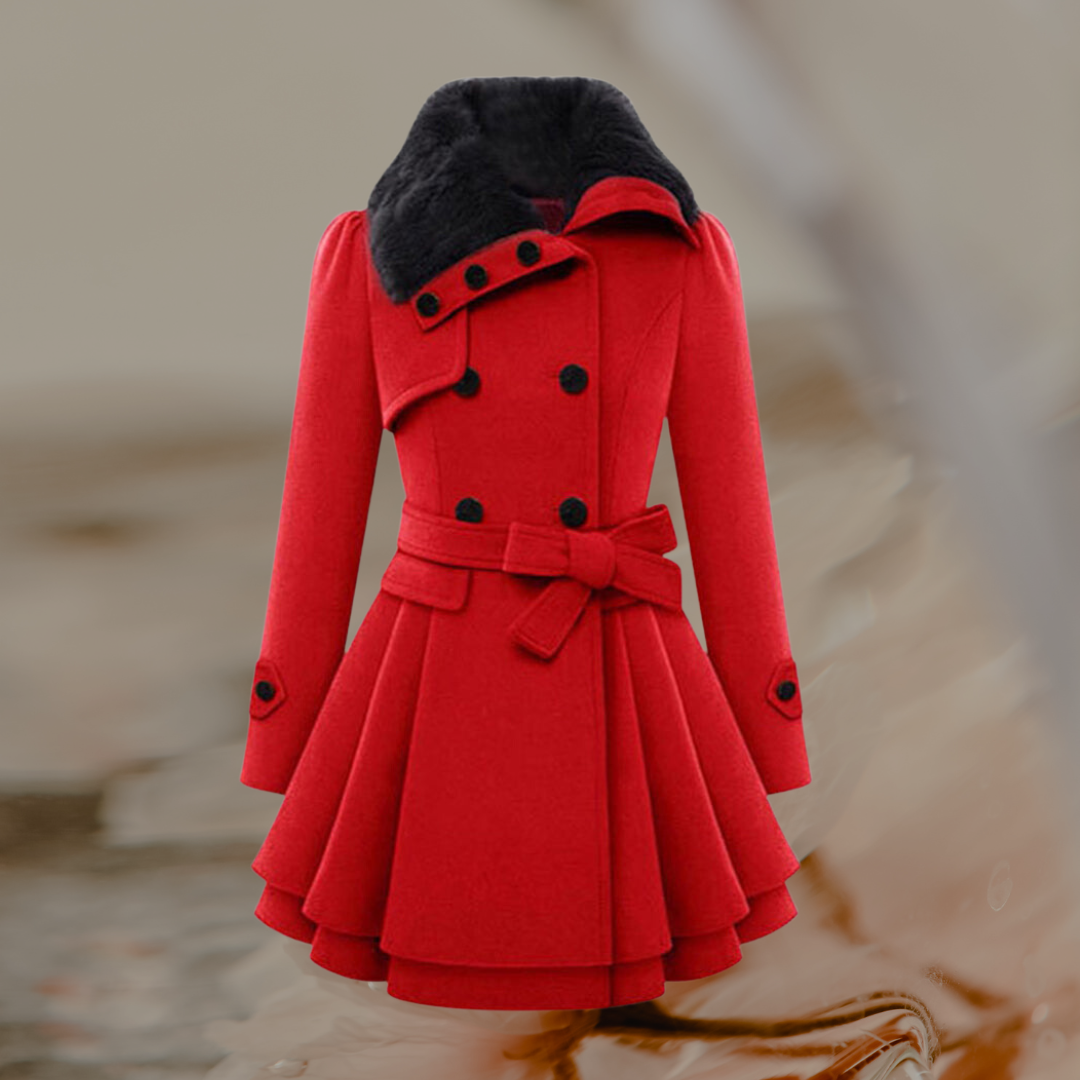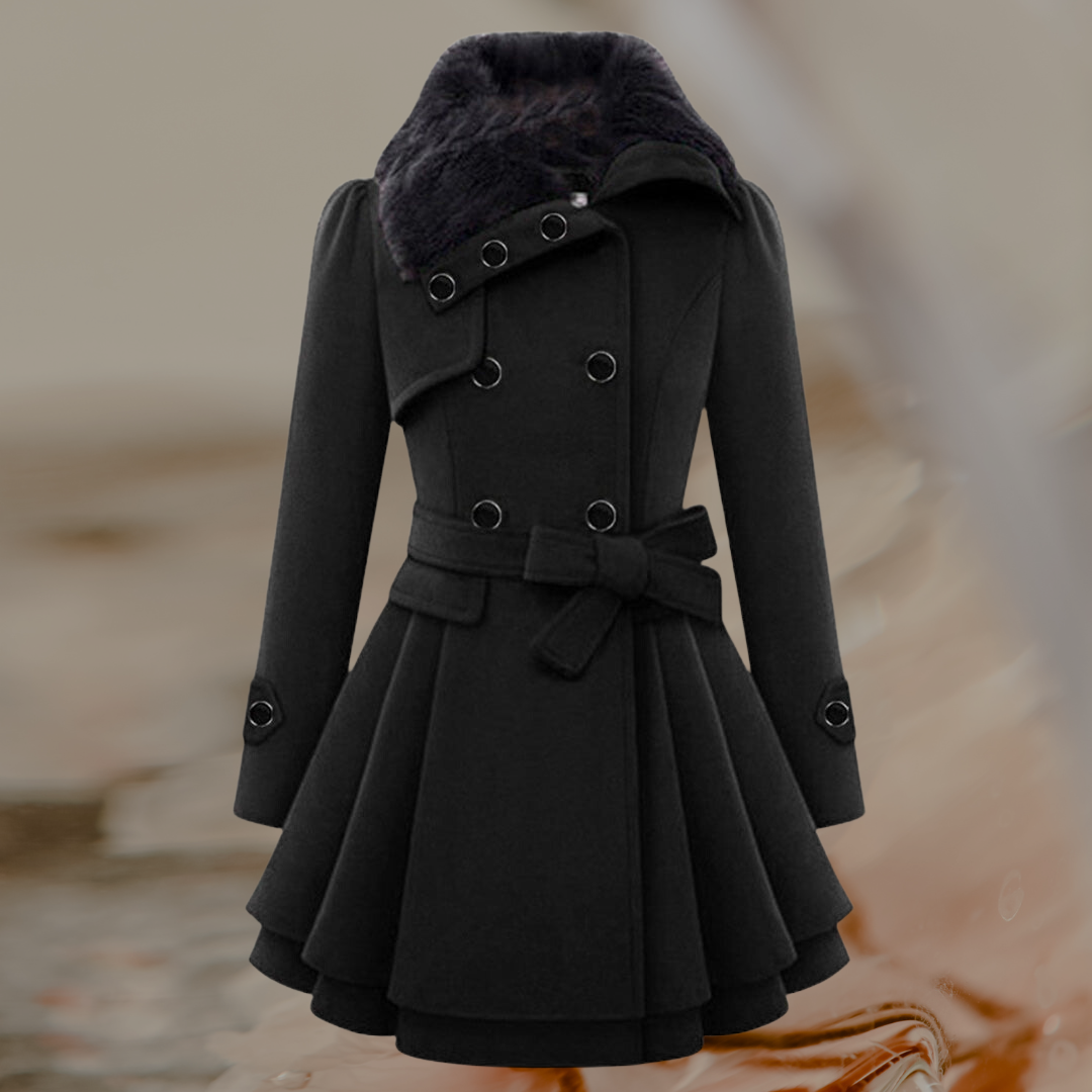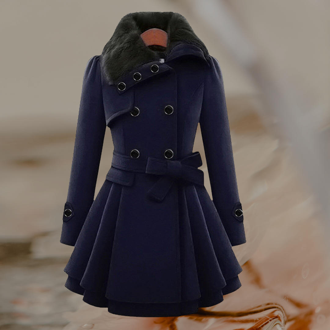 Deze jas is de perfecte keuze voor een verfijnde en comfortabele look in de winter en heeft een uniek dubbelrijig ontwerp dat zorgt voor een elegante uitstraling, ideaal voor elke gelegenheid. Het is gemaakt van hoogwaardige materialen die je heerlijk zacht en warm houden, zelfs tijdens de koudste dagen. De jas is veelzijdig genoeg voor zowel formele als casual outfits en zal je garderobe verfraaien met een verfijnde stijl.
