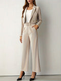 Stap in verfijning met deze chique beige blazer en broek set. Perfect voor elke gelegenheid, dit ensemble biedt tijdloze stijl en zelfvertrouwen. De set is de ideale keuze voor vrouwen die kracht en elegantie willen uitstralen, of het nu voor een zakelijke bijeenkomst is of een avondje uit.