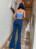 Deze flared jeans met hoge taille bieden een chique, vintage look met een moderne twist. Het rekbare denim zorgt voor ultiem comfort, terwijl de uitlopende pijpen een stijlvolle en flatterende silhouet creëren. Perfect voor elke gelegenheid, deze jeans combineert retro charme met eigentijdse flair.