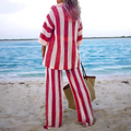 Ontdek de Gehaakte Strandoutfit, jouw ultieme zomerkleding voor strand, terras en ontspannen vakantiedagen. Deze tweedelige set combineert een elegante gehaakte blouse met een wijde, comfortabele broek. Gemaakt van een zachte en ademende katoenmix, ontworpen voor moeiteloze elegantie. Perfect om zowel als set te dragen of te mixen met andere zomergarderobe.
