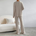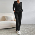 Verhoog je garderobe met deze outfit, een geribbelde V-hals set die is ontworpen om een flatterende pasvorm en een comfortabele uitstraling te bieden voor elke gelegenheid. Dit setje biedt het perfecte evenwicht tussen stijl en gemak, ideaal voor een casual uitje of een ontspannen dag thuis.