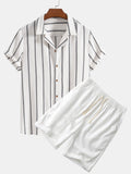 Deze stijlvolle set bestaat uit een luchtig, gestreept overhemd met korte mouwen en een bijpassende elastische shorts. Het ademende materiaal zorgt voor optimaal comfort, terwijl het moderne ontwerp je een frisse en modieuze uitstraling geeft. Perfect voor warme zomerdagen, een dagje strand of een casual avondje uit.