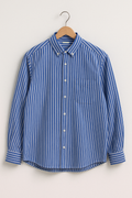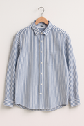 Dit Gestreepte Overhemd met Lange Mouwen combineert klassieke elegantie met een frisse, moderne uitstraling. Gemaakt van zacht, licht materiaal voor optimaal draagcomfort. De blauwe-witte strepen zorgen voor een stijlvolle, verzorgde look. Dankzij de button-down-kraag en borstzak is het shirt perfect voor kantoor, vrije tijd of een gelaagde outfit. Draag het losjes of strak – de keuze is aan jou.