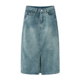 Deze Jeans Rok Met Hoge Taille combineert stoere denim met vrouwelijke finesse. De hoge taille creëert een slank silhouet, terwijl de voorste split nonchalant gemak en een moderne uitstraling biedt. Deze rok is perfect voor een urban, karaktervolle look. Gemaakt van stevig denim in klassiek blauw, geschikt voor talloze combinaties – van casual tot street‑ready.