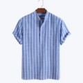 Deze tweedelige set combineert luchtig comfort met een modern zomerlijf. Het gestreepte overhemd met staande kraag en de losse broek vormen samen een harmonieus, casual ensemble. Ideaal voor warme dagen met een gevoel voor stijl.