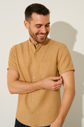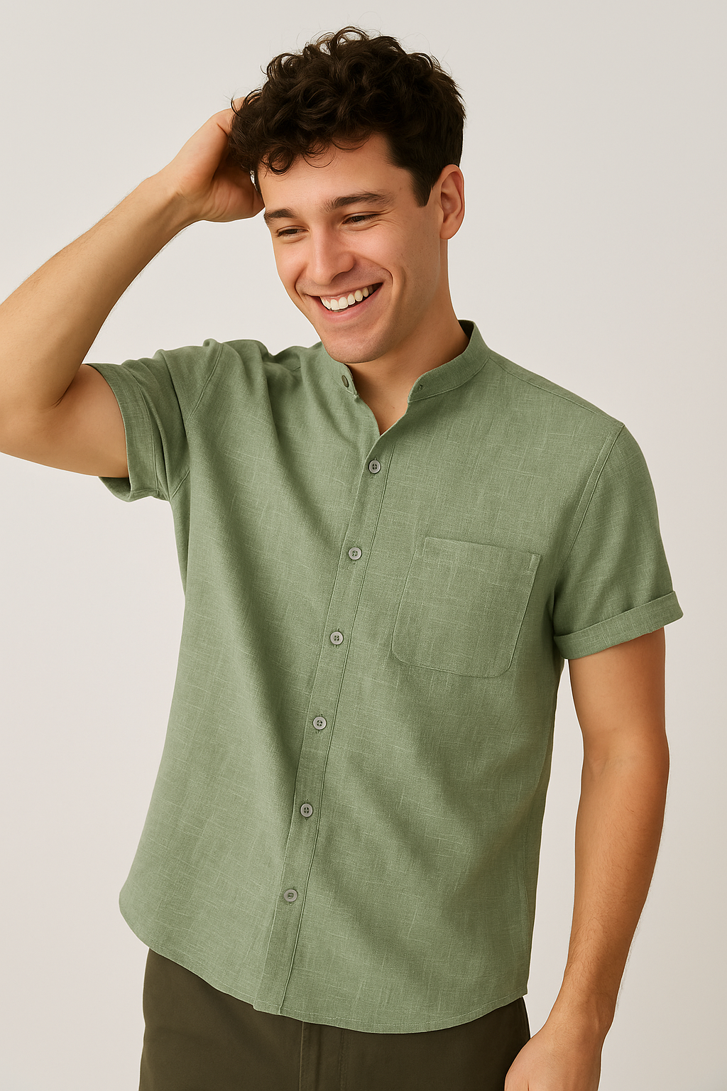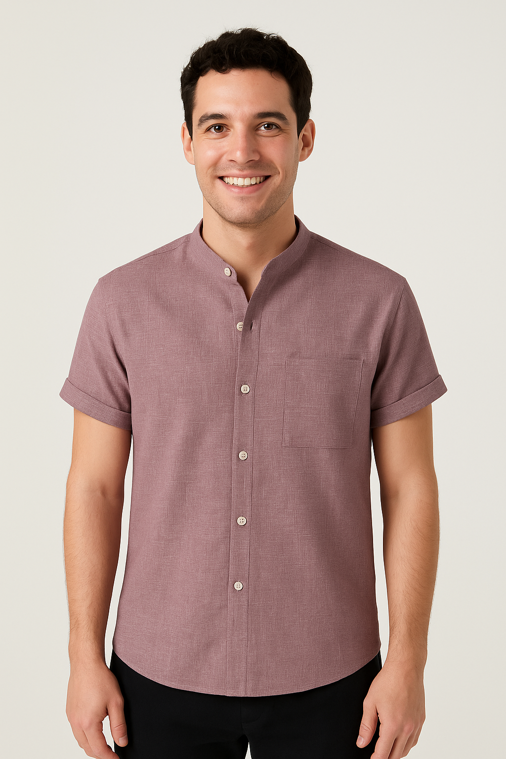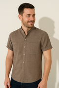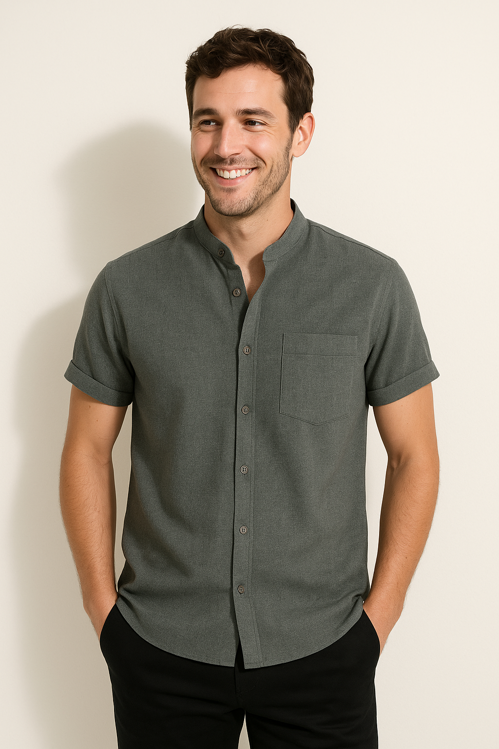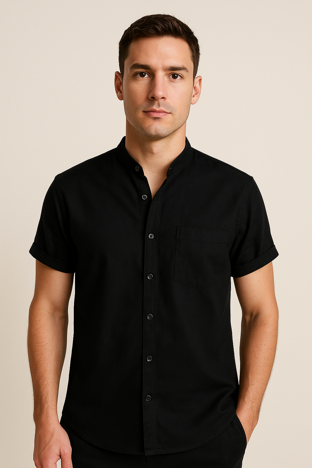 Dit Korte Mouwen Overhemd met opstaande kraag en borstzak geeft jouw zomerse outfit een frisse, moderne uitstraling. Gemaakt van een ademende katoen-polyester mix, biedt het overhemd optimaal draagcomfort tijdens warme dagen. De minimalistische opstaande kraag en strakke lijnen zorgen voor een elegante en verzorgde look. De praktische borstzak maakt het ontwerp compleet en functioneel. Ideaal voor zowel casual dagen als stijlvolle gelegenheden.