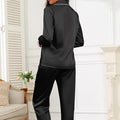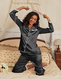 Deze satijnen pyjama set met lange mouwen straalt pure elegantie uit. Gemaakt van hoogwaardige kunstzijde, voelt de stof zijdezacht aan op je huid en geeft het een luxe gevoel. De klassieke reverskraag en knoopsluiting zorgen voor een tijdloze look, terwijl het kantdetail een vrouwelijke touch toevoegt. Ideaal om thuis te ontspannen of stijlvol in te slapen – het hele jaar door.