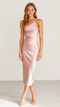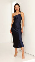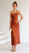 Deze midi jurk tilt je stijl naar een hoger niveau dankzij het moderne one-shoulder ontwerp en de flatterende pasvorm. De elegante midi-lengte en het zachte, gestructureerde materiaal zorgen voor een luxe uitstraling. Ideaal voor bruiloften, diners, gala’s of andere bijzondere gelegenheden waarbij je wilt opvallen.