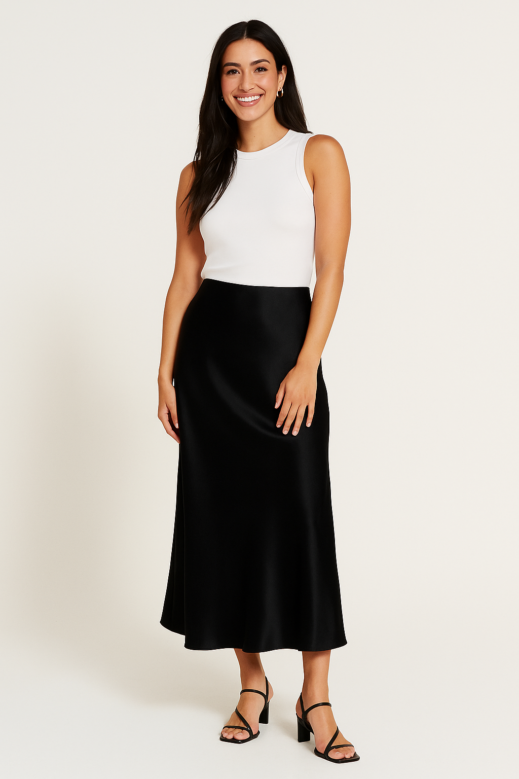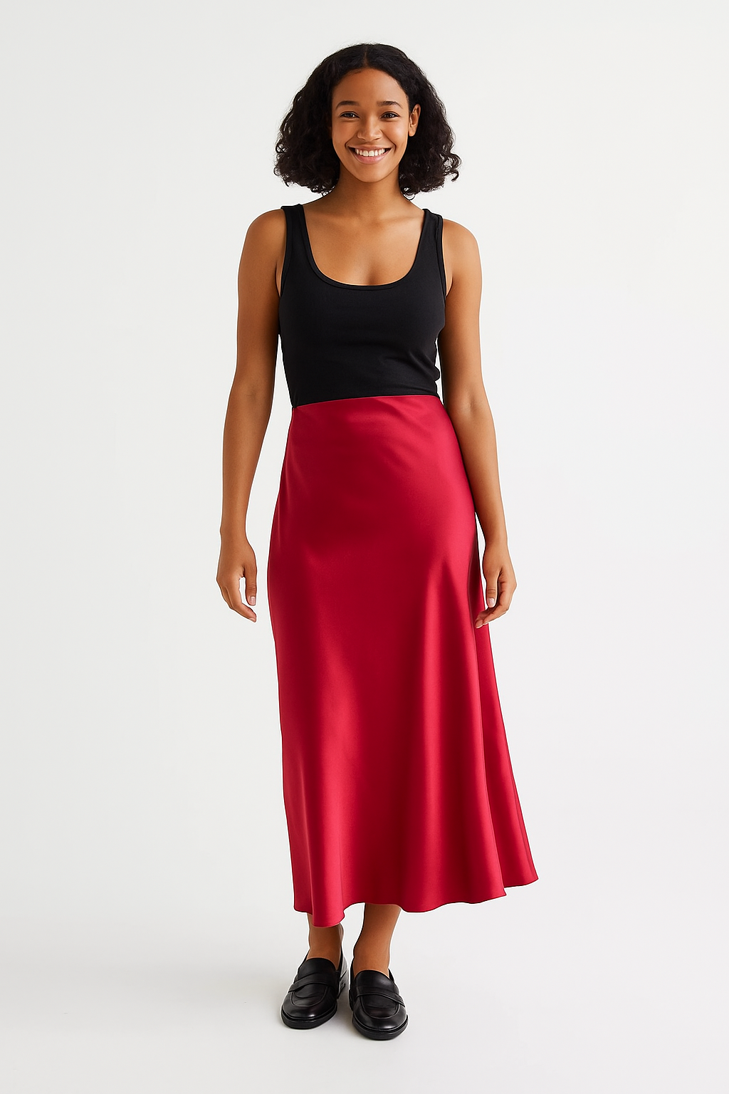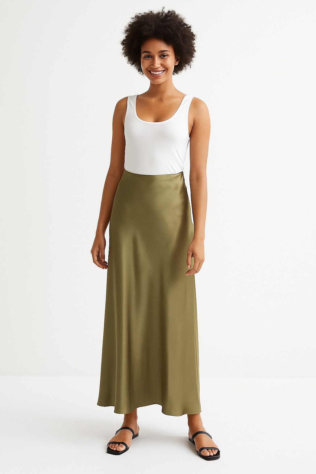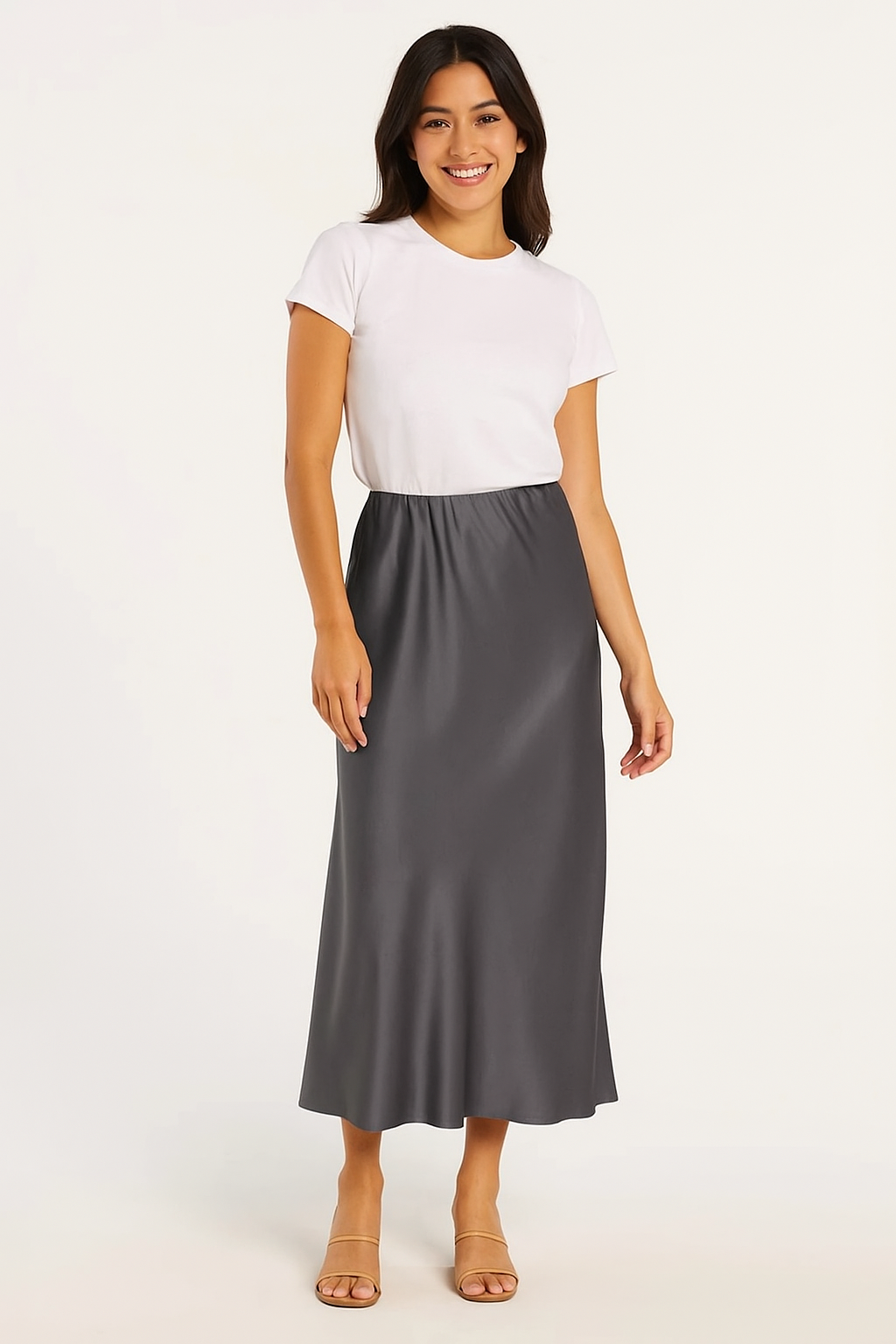Ontdek de ultieme romantische midirok met een zijdezachte glans en vrouwelijke A-lijn silhouet. De Midi Rok met Glanslook flatteert elk figuur en geeft je look een chique touch. Dankzij de comfortabele elastische band zit hij de hele dag perfect. Ideaal voor een stijlvol avondje uit of verfijnde dagelijkse outfits. Breng je garderobe tot leven met dit elegante statement-piece.