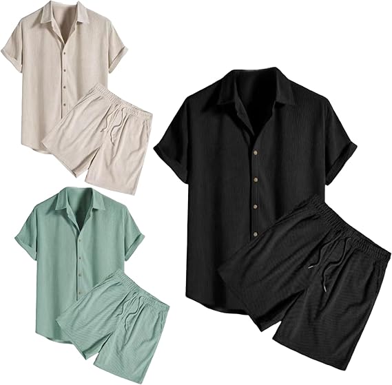 Ontdek de ultieme zomeroutfit met deze Short Sleeve Shirt & Shorts Set met Textuur. Dit ademende set is ontworpen voor comfort en stijl, perfect voor warme dagen, vakantie of casual uitjes.