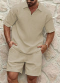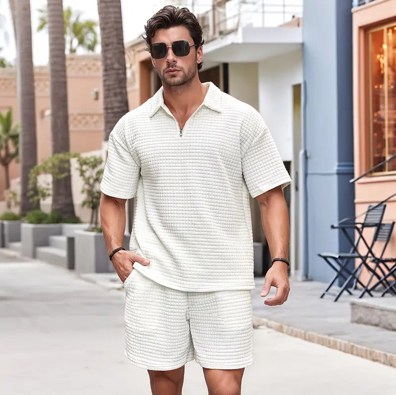Deze Polo met Rits en Shorts Set biedt de perfecte balans tussen stijl en comfort. Het hoogwaardige, gestructureerde materiaal zorgt voor een frisse uitstraling, terwijl de praktische rits en de bijpassende shorts het ideale duo vormen voor een ontspannen zomerse look. Of je nu een casual dag hebt of een avondwandeling maakt, dit set is jouw go-to keuze.
