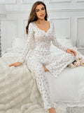 Deze lange mouwen pyjama is ontworpen voor vrouwen die comfort en elegantie waarderen. Gemaakt van een zachte mix van polyester en spandex, voelt deze pyjama soepel aan op de huid en zorgt hij voor een comfortabele pasvorm. Het unieke bloemenmotief voegt een charmant detail toe, perfect voor een ontspannen avond op de bank of een goede nachtrust.