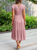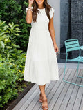 Deze midi jurk combineert een luchtige A-lijn pasvorm met een tijdloze elegantie. Het zachte, vloeiende materiaal zorgt voor optimaal draagcomfort, terwijl de midi-lengte een veelzijdige en elegante uitstraling geeft. Perfect voor verschillende gelegenheden, van casual tot chique.